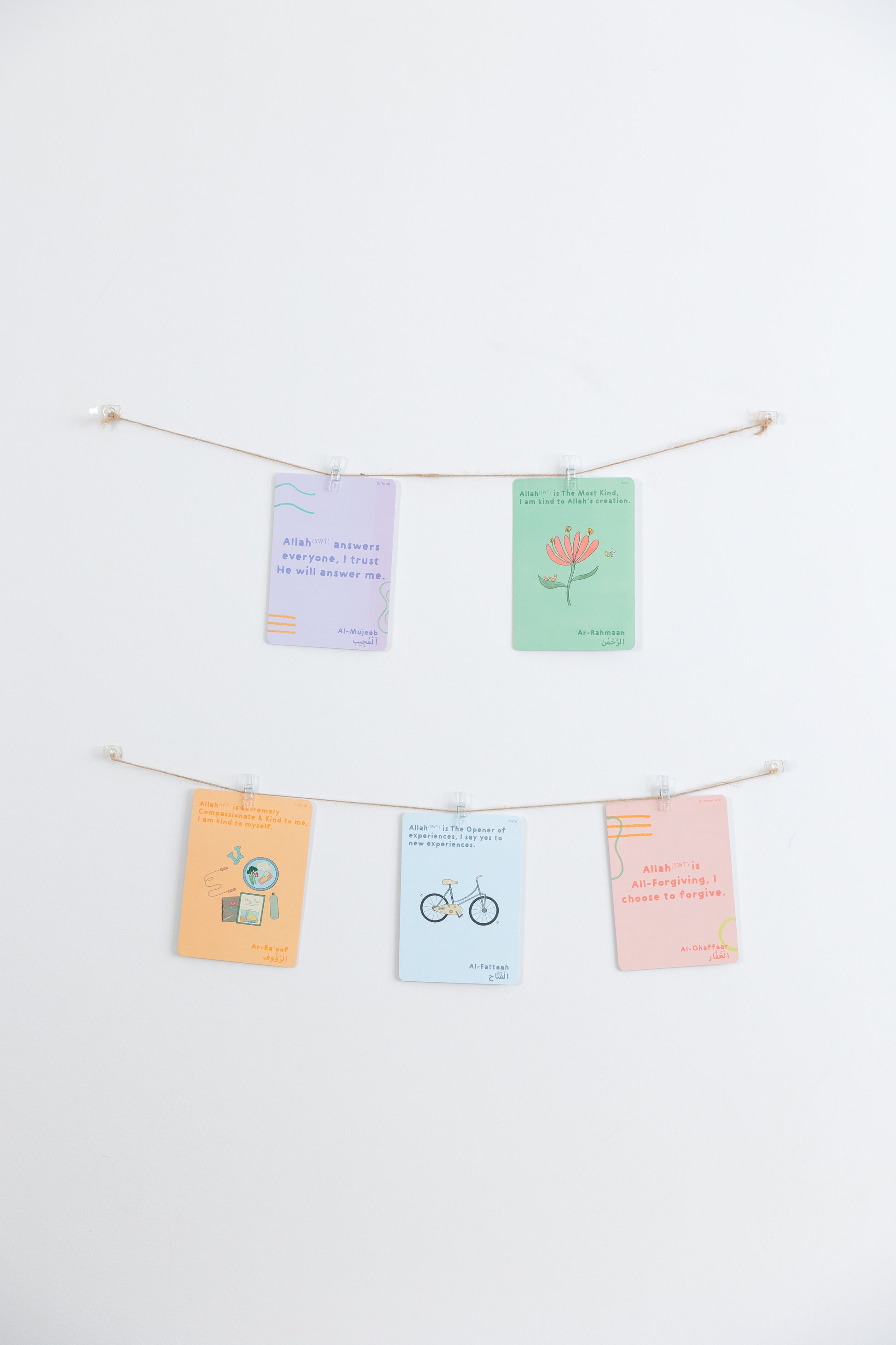 - An illustration/design which includes the affirmation and the names(s) of Allah in both English (phonetically to support correct pronunciation) and Arabic.